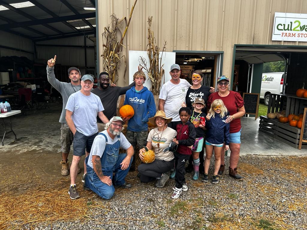 Join us to pick your own farm-fresh Cul2vate pumpkins. Tickets include a complimentary snowcone, bag of popcorn, cup of Cul2vate coffee, and face-painting for the kiddos (pumpkins sold separately). Enjoy a morning on our beautiful farm, pick up some flowers and produce in our Farm Store, and even meet Buttons the cow!